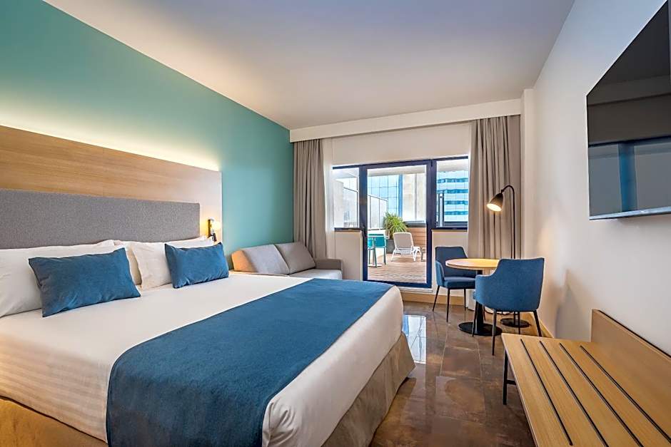 The double room offers air conditioning, a mini-bar, a terrace with city views as well as a private bathroom featuring a bath. The unit offers 2 beds.